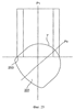Такой блок 238 открывания/закрывания задвижки сформирован с использованием двунаправленного блока привода, который предназначен для избирательного привода блока 215 задвижки в движение в двух направлениях, то есть в направлении открытого отверстия для части 213 головки и в направлении закрытого отверстия для части головки. В частности, двунаправленный блок привода сформирован в виде витой пружины 239 кручения, которая показана на фиг.18. Такая витая пружина 239 кручения, установленная между блоком 215 задвижки и основным блоком 5 корпуса картриджа, расположена в месте, в направлении которого блок 215 задвижки 215 перемещается при открывании отверстия для части 13 головки, как показано на фиг.18. В частности, витая пружина 239 кручения установлена так, что она зацепляется дальним концом секции 239а плеча с отверстием 240 зацепления, которое сформировано на дальнем конце детали 232 установки рычага фиксатора, и установлена кольцом 241 на дальнем конце другой секции 239b плеча на упорную шпильку 242, которая сформирована в виде выступа на внутренней поверхности основного блока 5 корпуса картриджа.