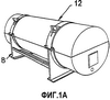 На фиг.1 показан усовершенствованный контейнер 10 типа 30В в соответствии с настоящим изобретением. Контейнер 10 показан внутри нижней половины защитной отгрузочной тары или «транспортной тары» 12. Транспортная тара 12 расположена в опоре 8 со снятой наполовину верхней крышкой и открытыми креплениями, обеспечивающими безопасность. Как известно, в процессе отгрузки контейнер 10 заполняется полностью до 5020 фунтов по существу гексафторидом урана и полностью помещается в транспортную тару, как показано на фиг.1А.