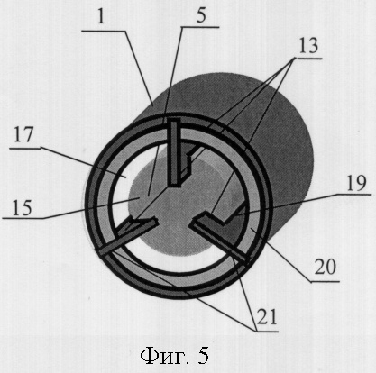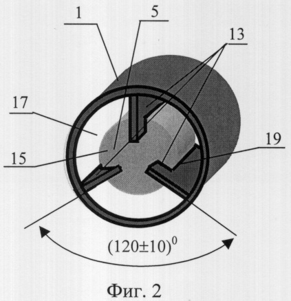 Для улучшения теплоотвода от диэлектрического резонатора 5 (при некотором снижении его добротности) рационально выполнить в направлении продольной оси внешнего цилиндрического экрана 4 длины металлических пластин 13 равными длине полых металлических цилиндров 1.