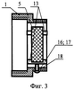 Кроме того, эффект подавления паразитных полос пропускания фильтра наблюдается и при таком выполнении держателя 6, когда противоположный торец 16 тонкой металлической пластины 13 упирается в винт 18, который ввернут во внутреннюю поверхность 17 полого металлического цилиндра. Причем такое выполнение держателя 6 удобно при необходимости юстировки положения диэлектрического резонатора 5 относительно оси фильтра.