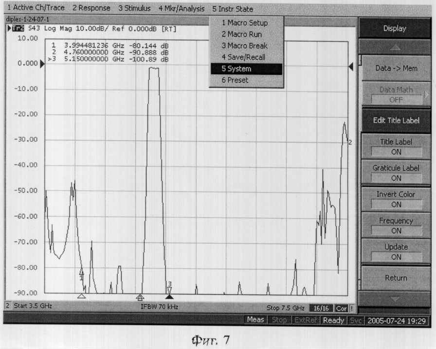 Сущность изобретения поясняется чертежами, где на фиг.1-5 представлен полосно-пропускающий фильтр, на фиг.6 и 7 – частотные характеристики полосно-пропускающего фильтра-прототипа и фильтра по настоящему изобретению.