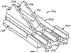 На фиг.3 показан вид в перспективе загрузочной планки 504. Каждый канал 510 установки проводов выполнен полукруглым. В соседние каналы 510 установки проводов вводят проводник штыря и проводник кольца соответствующей пары, и эти каналы содержат кромку 520, расположенную между ними, предназначенную для точной установки проводов. Между соседними парами каналов 510 установки проводов расположены барьеры 522. Барьеры 522 позволяют удерживать проводники штыря и кольца из различных пар, не давая им пересекаться, и имеют высоту, большую, чем толщина проводов. Барьеры 522 расположены непосредственно над каналами 512 установки проводов во второй плоскости.