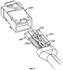 Экранирующий элемент 752 затем вводят в корпус 502 вилки так, что провода входят в соответствующие каналы установки проводов.