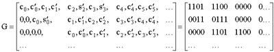Другим видом представления помехоустойчивого кода является представление при помощи порождающей матрицы, так в этом представлении операция кодирования может быть записана как умножение вектора информационных символов на порождающую матрицу, результатом которого будет вектор кодовых символов: SG=С.