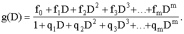 Наряду с термином “порождающий полином” используется термин “рациональная функция передачи” от оператора задержки D: