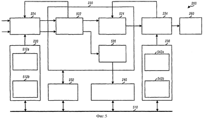 В некоторых конструкциях предусмотрен микроконтроллер 232, который руководит работой блока 230 обработки данных. В таких конструкциях микроконтроллер 232 получает директивы или команды из контроллера 240 для решения конкретных задач (например, для осуществления корреляции применительно к одному или нескольким предназначенным для этого отводам многоотводного приемника). Кроме того, микроконтроллер 232 руководит работой блока 230 обработки данных и других блоков (например, буфера 224, блока 234 буферизации и обращенного перемежения), обеспечивая решение ими соответствующих задач. Микроконтроллер 232 может уменьшить объем контроля, требуемый контроллером 240, а также объем взаимодействия между контроллером 240 и другими элементами. Таким образом, микроконтроллер 232 может освободить контроллер 240 от выполнения некоторых функций и обеспечить поддержку им дополнительных каналов и/или пользователей.