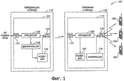 В соответствии с еще одним вариантом выполнения изобретения механизм регулировки скорости содержит применение способа передачи к пакетированному сигналу, принятому, по меньшей мере, по одному из активных каналов, причем этот способ передачи представляет собой элемент, выбранный из группы, состоящей из ИКМ (РСМ, импульсно-кодовая модуляция), АДИКМ (ADPCM, адаптивная дифференциальная импульсно-кодовая модуляция), АКЛП-СС (CS-ACELP, адаптивное кодовое линейное предсказание со связанной структурой), КЛП-БР (LD-CELP, кодовое линейное предсказание на большом расстоянии), MPNLQ, АКЛП (ACELP, адаптивное кодовое линейное предсказание), АМС (AMR, адаптивная многоскоростная передача), УКПС (EVRC, улучшенные кодеки с переменной скоростью), ВВР (SMV, вокодер с выбираемым режимом), КЛПКК (QCELP, кодовое линейное предсказание компании Qualcomm) ретрансляции в ГПП (VBD, ретрансляция в голосовой полосе пропускания), FEC/без FEC, кодера/декодера RTP, кодера/декодера стандартов Т. 38, MPEG1 (MPEG – Экспертная группа по вопросам движущегося изображения), MPEG2, MPEG4, MPEG3, Н.264, ILBC и т.п.