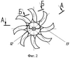 На фиг.2 изображен диск батарей с саблевидными измельчителями (вид справа, сбоку).