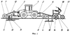 Трактор 1 агрегата снабжен двумя навесными устройствами 2 и 3. К устройству 3 посредством навески 7 присоединяется рама 5. На раме 5 размещены и закреплены стойка лапы 11 дисковая батарея 12 с измельчителями 13 и опорные колеса 9 с механизмом регулирования глубины хода лапы 11.