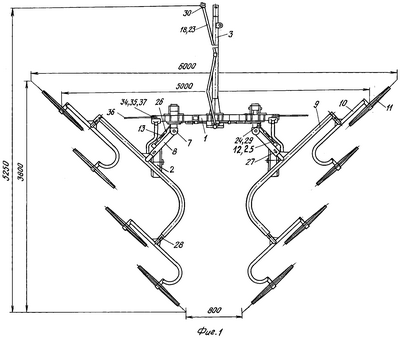 Уменьшение или увеличение давления рабочих колес на почву производится регулировкой усилия пружин амортизаторов 14 с помощью стяжных гаек 6.