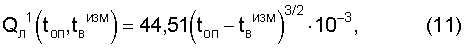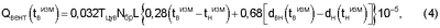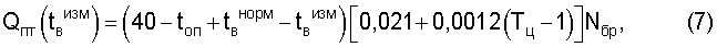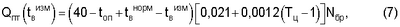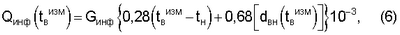 Понятно, что величины Qо cp(tв изм) и [NлQл 1(tоп изм)Tо]/k равны друг другу только при условии Qпт=0, т.е. по известному условию теплового баланса вносимая в помещение без животных или без птицы мощность обогрева полностью расходуется на потери мощности помещением. Если биологическая теплота от животных или от птицы присутствует, то в установившемся тепловом режиме помещения с поголовьем теплоотдача помещения всегда больше теплопритока от системы обогрева на величину тепловыделений животных или птицы.