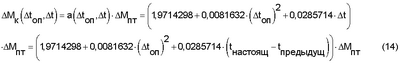 Учитывая, что Мпт=Пбр(tоп, t, В, КА), а разность (tнастоящ-tпредыдущ)=1, измеряется в сутках цикла выращивания птицы, получаем суточный расход корма: