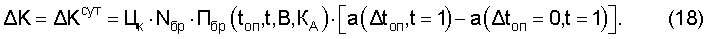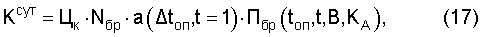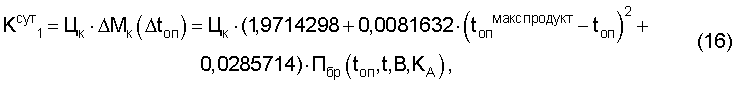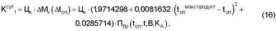 Понятно, что прирост суточного расхода корма Ксут из-за ненормативного управления режимом обогрева поголовья птицы в птичнике при отклонении tоп от нормативного значения tоп макс продукт равен разности между двумя значениями суточного расхода корма – при отклонении tоп от tоп макс продукт и при tоп=tоп макс продукт, т.е. при tоп=0: