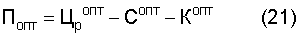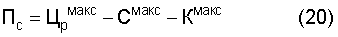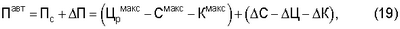 где Павт – годовая (суточная) прибыль нового предприятия или новой технологии или системы, руб./год (сут.); Цр макс – рыночная цена реализованной за год (или в пересчете на текущие сутки) продукции в действующей системе обогрева по условию получения наивысшей продуктивности поголовья, руб./год (сут.); Смакс и Кмакс – годовые (суточные) энергетические издержки производства и расход корма в действующей системе обогрева по условию получения наивысшей продуктивности поголовья, руб./год (сут.); П – увеличение прибыли, руб./год (сут.), в результате экономически обоснованного снижения затрат на энергию в обсуждаемой обогревательной технологии С, руб./год (сут.), при неизбежно возникающих при предлагаемом методе экономической оптимизации режима обогрева дополнительных затратах на корм для поголовья К, руб./год (сут.), при расчетных потерях продуктивности Ц, руб./год (сут.) – здесь Ц записано по абсолютной величине.
