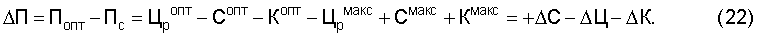 Вычитая из второго значения разности по (21) ее первое значение по (20), получаем прирост прибыли (годовой, суточной, часовой и т.п. – какую именно решили выбрать для расчетов и для последующего управления предприятием или технологией) П, образовавшийся в результате оптимального (наилучшего) автоматизированного управления обогревом помещения с молодняком.