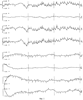 На фиг.1 показаны нистагмограммы больного рассеянным склерозом с поражением вестибулярного анализатора до тепловой нагрузки, а на фиг.2 – нистагмограммы, записанные после тепловой нагрузки.