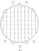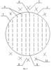 На фиг.1 изображено изометрическое расположение гофрированного грыжевого мешка в грыжевом кольце, прошитого четным количеством шовных рядов, при выполнении каждого шовного ряда отдельной нитью; на фиг.2 изображено изометрическое расположение гофрированного грыжевого мешка в грыжевом кольце при выполнении каждой пары шовных рядов одной нитью и с размещением хирургических узлов на одной стороне грыжевых ворот; на фиг.3 – изометрическое расположение гофрированного грыжевого мешка в грыжевом кольце при выполнении каждой пары шовных рядов одной нитью и с размещением хирургических узлов в шахматном порядке; на фиг.4 – схема прошивания грыжевого мешка по фиг.1; на фиг.5 – схема прошивания по фиг.2; на фиг.6 – схема прошивания по фиг.3.