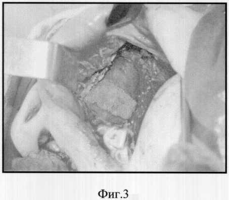 Фиг.3. Фрагмент операции. Имплантат, установленный на место дефекта.