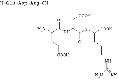 Другой аспект настоящего изобретения касается пептида глутамил-аспартил-аргинин общей формулы: H-Glu-Asp-Arg-OH последовательности 1 [SEQ ID NO:1].