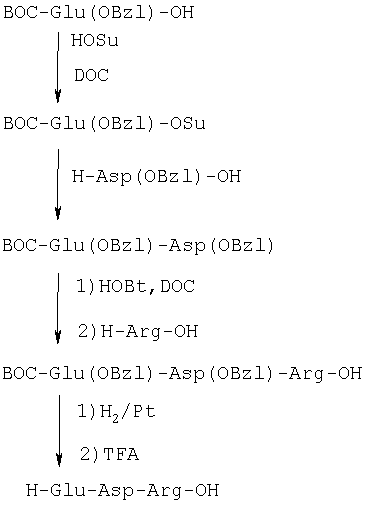 3) BOC-Glu(OBzl)-Asp(OBzl)-Arg-OH (III), N-трет.бутилоксикарбонил-( -бензил)глутамил-( -бензил)аспартиларгинин (III).