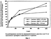 Из Фиг.1 можно определить, что все три препарата уже через 30 минут высвобождают приблизительно 25% содержащегося ЦсА. Высвобожденное количество фармацевтического средства возрастает в случае более длительного времени тестирования. На Фиг.2, для лучшего сравнения носителей с различной концентрацией, высвобожденные количества фармацевтического средства приведены на 10 мг примененного препарата.