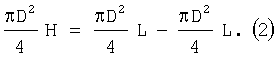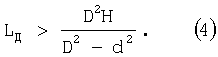 Выражая значения объемов, приведенные в соотношении (1), через диаметры гидроцилиндра D, штока d, длину максимального хода штока Н и минимальную длину штоковой полости L (см. фиг.2), получим выражение