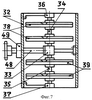 Аэродинамическое судно содержит корпус 1 с водительским 2 и пассажирским 3 отделениями. Внутри передней части корпуса размещен главный двигатель 4, который через муфту сцепления 5 посредством карданных валов, управляемых редукторов продольного и поперечного наклонов 6, 7, переднего 8 и заднего 9 редукторов, поворотного 10 и бортовых 11 редукторов кинематически связан с движителями вертикального подъема 12, 13, 14, 15, 16, 17. Внутри задней части корпуса размещен маршевый двигатель 18, который через муфту сцепления 19, карданные валы 20, главный редуктор 21 и бортовые редукторы 22, 23 приводит в движение маршевые движители горизонтального перемещения 24, 25, размещенные в задней части корпуса. Позади маршевых движителей горизонтального перемещения в потоке воздуха установлены рули поворота 26, 27. По обоим бортам в нишах 28, 29 расположены движители вертикального подъема, одинаковые по конструкции, сверху и снизу закрытые решетками 30, 31. Каждый движитель вертикального подъема содержит пустотелый цилиндрический корпус 32, открытый сверху и снизу и установленный вертикально. Внутри корпуса закреплен редуктор 33, верхний 34 и нижний 35 вертикальные валы которого закреплены в подшипниках 36, 37. На верхнем вертикальном валу закреплена верхняя группа дисков 38, размещенных один над другим, на некотором расстоянии друг от друга, а на нижнем вертикальном валу закреплена нижняя группа дисков 39, размещенных один над другим, на некотором расстоянии друг от друга. Количество дисков в одном движителе вертикального подъема не ограничено и определяется величиной необходимой подъемной силы. Все диски движителей вертикального подъема одинаковы по конструкции и каждый из них имеет снизу гладкую поверхность (фиг.11), а на верхней поверхности выполнены, чередующиеся друг с другом, концентрические полукруглые впадины 40 и концентрические полукруглые гребни 41. Каждый концентрический полукруглый гребень разделен на несколько частей и имеет передний 42 и задний 43 скосы, между которыми выполнены сквозные вертикальные каналы 44, продольная ось каждого из которых наклонена в сторону вращения диска и расположена под углом к нижней поверхности диска параллельно заднему скосу, стоящего впереди гребня. Высота концентрических полукруглых гребней и глубина концентрических полукруглых впадин равна радиусам, одинаковых по диаметру окружностей, центры которых расположены на одной линии, равноудаленной на некоторое расстояние от нижней поверхности диска. Расстояние от нижней поверхности и до центра концентрического полукруглого гребня и концентрической полукруглой впадины определяется толщиной и прочностью диска (фиг.14). Редуктор движителя вертикального подъема содержит корпус 45, закрытый крышкой 46, имеющей подшипник 47, в котором установлен ведущий вал 48, второй конец которого пропущен в подшипник 49 корпуса движителя вертикального подъема. На ведущем валу закреплена ведущая шестерня 50, входящая в зацепление с ведомыми шестернями 51, 52, которые закреплены на верхнем и нижнем вертикальных валах, установленных в подшипниках 53, 54 корпуса редуктора. Оба неуправляемые редукторы привода движителей вертикального подъема одинаковы по конструкции и каждый из них содержит корпус, закрытый крышкой, в подшипнике которой закреплен ведущий вал, на котором закреплена ведущая шестерня.