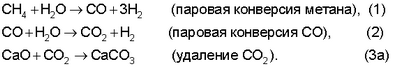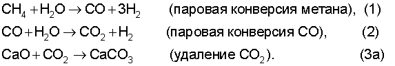 Использование наряду с катализатором поглотителя диоксида углерода решает две задачи: позволяет удалить один из продуктов реакции – диоксид углерода, и сдвинуть равновесие в реакции паровой конверсии СО в сторону образования водорода. Несмотря на очевидные достоинства данного способа, необходимость периодической регенерации поглотителя по обратной реакции