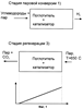 В этом способе уменьшение концентрации СОх обусловлено, во-первых, понижением температуры на стадии паровой конверсии ниже 650°С, во-вторых, введением дополнительной стадии метанирования. Так же, как и в предыдущей работе, существенная часть углеводородного топлива остается непрореагировавшей, в силу низкой активности катализаторов паровой конверсии при температуре ниже 650°С. Другим недостатком предложенной схемы является неэффективный подвод тепла на стадии регенерации, осуществляемый посредством теплопередачи от предварительно нагретого газа, продуваемого через неподвижный слой, к поглотителю, что требует высоких расходов газа регенерации и понижает энергетическую эффективность процесса получения водорода. Фиг.1 иллюстрирует способ осуществления стадии 1) паровой конверсии в присутствии поглотителя и стадии регенерации поглотителя 3) в соответствии с патентом US 6682838, 429/17, 27.01.2004.