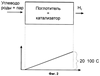 Приведенный анализ свидетельствует о необходимости поддержания температуры выше 700°С для достижения высокой степени превращения углеводородов на катализаторах паровой конверсии. С другой стороны, в этой области температур давление паров CO2 над СаСО3 слишком высоко, что препятствует эффективному удалению CO2. Как следует из фиг.3, эффективная очистка от СО и СО2 продуктов реакции начинается при температуре менее 700°С, когда их равновесная концентрация в присутствии поглотителя снижается более чем на порядок. Таким образом, совместный кинетический и термодинамический анализ процесса паровой конверсии в присутствии поглотителя приводит к выводу о необходимости наличия в слое поглотителя и катализатора на стадии А) двух температурных областей, одна из которых, с температурой выше 700°С, обеспечивает более полную конверсию углеводородов, а другая, с температурой ниже 700°С, – очистку водородсодержащего газа от СО и CO2.
