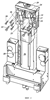 1. Механизм открывания и закрывания форм секционной стеклоформовочной машины, прикрепляемый к верхней, снабженной отверстием стенке машины, содержащий корпус исполнительного механизма, прикрепляемый к верхней стенке, вертикально расположенный вставной узел, включающий в себя корпус и привод, установленный на указанном корпусе и включающий в себя гайку, поддерживающую приводное рычажное средство, и средство, включающее в себя вертикально расположенный двигатель для перемещения указанной гайки, указанный корпус исполнительного механизма, ограничивающий вертикально проходящее отверстие корпуса над отверстием верхней стенки так, что указанный вертикально расположенный вставной узел может быть вставлен через отверстие корпуса и в отверстие верхней стенки, указанный корпус исполнительного механизма, включающий в себя вертикально расположенные борта, указанный корпус вставного узла, включающий в себя установочные средства для соединения с указанными бортами, крепежные средства для прикрепления указанных установочных средств к указанным бортам, посредством чего при раскреплении указанных крепежных средств указанный вставной узел может быть поднят из машины.