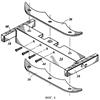 С этим валом 30 функционально соединен формонесущий механизм (фиг.4), который имеет формодержатель 34, к которому прикреплены верхняя и нижняя вставки 36. Кроме того, к формодержателю прикреплены две противоположные направляющие 38 (подвижные направляющие), которые могут скользяще перемещаться между верхними 40 и нижними 41 неподвижными направляющими (показана одна пара направляющих), которые с возможностью съема прикреплены к боковой раме 42. Направляющие имеют длину, выбранную таким образом, что когда механизм открывания и закрывания противоположных форм полностью отведен назад, подвижная направляющая опоры для форм может быть свободно отведена от неподвижных направляющих, что, таким образом, позволяет снимать формодержатель с машины, удаляя болты 44, которые проходят через соответствующие отверстия в формодержателе 34 и резьбовые отверстия 32 в валу 30, так чтобы можно было отремонтировать или заменить формонесущий механизм.