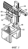 1. Извлекающий механизм для захвата бутылки, отформованной в пункте выдувания устройства для изготовления стеклянных емкостей индивидуального профиля, перемещающий бутылку в местоположение вблизи приемного стола и опускающий бутылку на приемный стол, содержащий захватный кронштейн, захватную головку, прикрепленную к захватному кронштейну для захвата бутылки, и средство, включающее средство управления для перемещения захватного кронштейна из первого положения, в котором бутылка захватывается в пункте выдувания, во второе положение, находящееся на первом выбранном расстоянии над приемным столом, для удерживания захватного кронштейна во втором положении в течение выбранного времени, для перемещения по истечении указанного выбранного времени захватного кронштейна вниз в направлении приемного стола в третье положение, и когда избранная захватная головка находится в третьем положении, для опускания бутылки на конвейер.