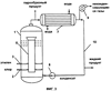 Часть жидкости отводится как продукт, а остальная масса возвращается насосом 8 в реактор для поддержания постоянного уровня жидкости. Неконденсирующиеся газы отводятся при помощи вакуум-насоса 9.