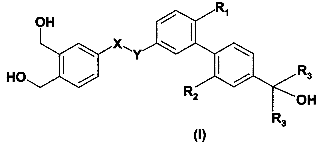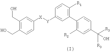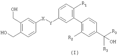 R4 обозначает атом водорода, метил, этил или пропил, за исключением {5-[2′-этил-4′-(1-этил-1-гидроксипропил)-6-метилбифенил-3-илоксиметил]-2-гидроксиметилфенил}метанола, {5-[4′-(1-этил-1-гидроксипропил)-2’изопропил-6-метилбифенил-3-илоксиметил]-2-гидроксиметилфенил}метанола и {2-гидроксиметил-5-[2’изопропил-6-метил-4′-(2,2,2-трифтор-1-гидрокси-1-трифторметилэтил)бифенил-3-илоксиметил]-фенил}метанола.
