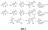 Соединения (1) (в случае, когда Y = O) и (2) могут быть получены, соответственно, исходя из соединений (4) и (9), сначала получением производных трифторметансульфоната (соответственно (5) и (10)) в присутствии трифторметансульфонового ангидрида и основания, такого как триэтиламин, в дихлорметане. Затем реакцией сочетания типа Сузуки (Suzuki) с производными бороновой кислоты (6) в присутствии катализатора, такого как тетракис(трифенилфосфин)палладий(0), получают, соответственно, производные (7) и (11), и затем реакцией сочетания с бромпроизводными (8) в присутствии карбоната калия в метилэтилкетоне. В случае, когда Y=NR4, соединение (1) может быть получено, исходя из соединения (12), сначала реакцией сочетания типа Сузуки с производным бороновой кислоты (13) в присутствии катализатора, такого как тетракис(трифенилфосфин)палладий(0), получают производное (14) и затем реакцией сочетания с бромпроизводными (8) в присутствии гидрида натрия в диметилформамиде.