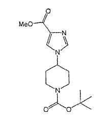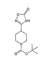 Смесь ранее описанного трет-бутил-4-[(Z)-амино(гидроксиимино)метил]пиперидин-1-карбоксилата (1,26 г, 5,18 моль) и 1,1′-тиокарбонилдиимидазола (1,38 г, 7,77 ммоль) в тетрагидрофуране (20 мл) перемешивают при к.т. в течение 45 мин. Реакционную смесь разбавляют водой (75 мл) и экстрагируют этилацетатом (2×75 мл). Органические порции объединяют, снова промывают водой (1×100 мл), сушат над сульфатом магния, фильтруют и концентрируют при пониженном давлении. Полученное масло растворяют в ТГФ (20 мл). К раствору добавляют бортрифторид диэтилэфират (2,21 г, 15,5 ммоль) и реакционную смесь перемешивают при к.т. в течение 1 час до концентрирования при пониженном давлении. Полученную смесь растворяют в ДХМ (20 мл) и охлаждают до 0°C. Триэтиламин (2,2 мл, 16 ммоль) и ди-трет-бутилдикарбонат (2,3 г, 10 ммоль) добавляют к дихлорметановому раствору и реакционную смесь перемешивают при к.т. в течение 2,5 час до концентрирования. Очистка методом СДЖХ (силикагель, 0-100% этилацетат/гексан) дает требуемый продукт. ЭСИ-МС: рассчитано для C12Н19N3O3S 285,36; найдено 212 (M-O-t-Bu).