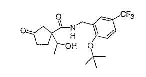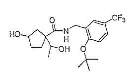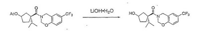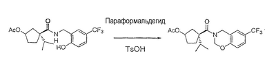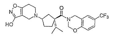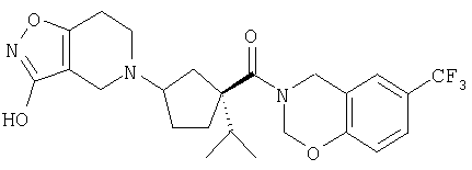 Смесь коммерчески доступного Gaboxadol гидрохлорида (134 мг, 0,760 ммоль), (3S)-3-изопропил-3-{[6-(трифторметил)-2Н-1,3-бензоксазин-3(4Н)-ил]карбонил}циклопентанона (54 мг, 0,15 ммоль), триэтиламина (106 мкл, 0,760 ммоль) и натрия цианборогидрида (57 мг, 0,91 ммоль) в 5 мл метанола перемешивают при к.т. в течение 4 час. Реакционную смесь концентрируют. Очистка методом ВЭЖХ с обращенной фазой (YMC Pack Pro С18, 100 х 20 мМ внутр. диам.) дает продукт в виде его TFA-соли. Данный продукт превращают в его HCl-соль, растворяя в ДХМ и добавляя избыток 1 н. HCl/эфир, затем концентрируя с получением целевого аналога в виде его соли гидрохлорида и в виде смеси цис- и транс-изомеров. ЭСИ-МС: рассчитано для C24H28F3N3O4 479; найдено 480 (M+H).