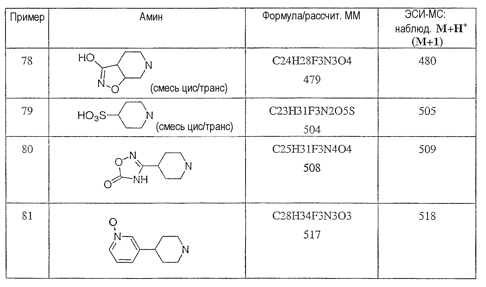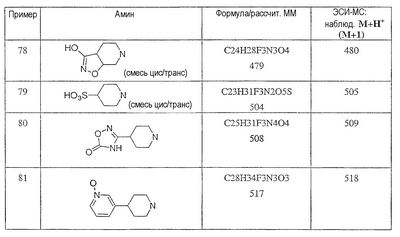 Другие примеры, полученные с применением условий восстановительного аминирования цианборогидридом натрия, описанных в примере 77, показаны в таблице 4.