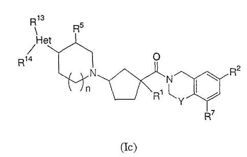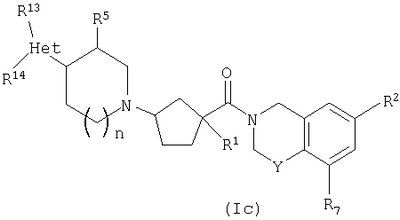 или их фармацевтически приемлемые соли или индивидуальные диастереомеры, в которых R1, R2, R5, R7, R13, R14, Y и n определены выше для Ia и где Het обозначает гетероцикл.