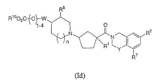 или их фармацевтически приемлемые соли или индивидуальные диастереомеры, в которых R1, R2, R5, R7, R10, Y, W и n определены выше для Ia и где С1-4 углеродная цепь является необязательно замещенной 1-4 независимыми заместителями из галогена, гидрокси, -С0-6алкила, -O-C1-3алкила, трифторметила или -C0-2алкилфенила,