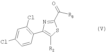 где R2 представляет фенильную группу, которая может быть замещена 1-4 атомами галогена или трифторметильными группами; и R8 представляет гидроксигруппу, разветвленную или неразветвленную алкокси (C1-4) группу, бензилоксигруппу или атом хлора.