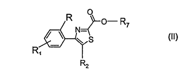 Изобретение относится к группе новых производных тиазола, к способам получения данных соединений и к фармацевтическим композициям, содержащим одно или несколько из данных соединений в качестве активного компонента. Вышеупомянутые производные тиазола являются сильными антагонистами каннабиноидного (СВ1) рецептора, агонистами СВ1-рецептора или частичными агонистами СВ1-рецептора, полезные в лечении психиатрических и неврологических заболеваний и других заболеваний, в которые вовлечена нейропередача каннабиноида СВ1. Производные 4,5-диарилтиазола были описаны в ЕР 388909 и ЕР 377457 как ингибиторы 5-липоксигеназы для лечения тромбоза, гипертонии, аллергии и воспалений. Все приведенные в примерах указанных документов структуры содержат два фенильных кольца, которые п-замещены метокси, фтором, метилтио или метилсульфинильной группой. WO 9603392 описывает сульфониларил-арилтиазолы для лечения воспалений и боли, артрита или лихорадки как связанных с воспалением заболеваний. JP 05345772 относится к 4,5-диарилтиазолам как ингибиторам ацетилхолинэстеразы, а JP 04154773 описывает 4,5-диарилтиазолы, обладающие анальгетическим, противовоспалительным и жаропонижающим действием. Было неожиданно найдено, что производные 4,5-диарилтиазола формулы (I), их пролекарства и их соли где – R представляет атом водорода или заместитель Х из группы, включающей: разветвленный или неразветвленный С1-3-алкил или алкокси, гидрокси, галоген, трифторметил, трифторметилтио, трифторметокси, нитро, амино, моно- или диалкил (С1-2)-амино, моно- или диалкил (С1-2)-амидо, разветвленный или неразветвленный (С1-3)-алкоксикарбонил, трифторметилсульфонил, сульфамоил, разветвленный или неразветвленный алкил(С1-3)сульфонил, карбоксил, циано, карбамоил, разветвленный или неразветвленный диалкил(С1-3)-аминосульфонил, разветвленный или неразветвленный моноалкил(С1-3)-аминосульфонил и ацетил; – R1 представляет атом водорода или 1-4 заместителя Х, где Х имеет вышеупомянутые значения; – R2 представляет фенильную, тиенильную, пиридильную или пиримидильную группу, которые могут быть замещены 1-4 заместителями Х, где Х имеет вышеупомянутые значения, или R2 представляет нафтил; – R3 представляет атом водорода, или разветвленную или неразветвленную С1-10 алкильную или циклоалкилалкильную группу, или фенильную, бензильную или фенетильную группу, ароматическое кольцо которой может быть замещено 1-5 заместителями Z, которые могут быть одинаковыми или различными и выбраны из группы разветвленного или неразветвленного С1-3-алкила или алкокси, гидрокси, галогена, трифторметила, трифторметилтио, трифторметокси, нитро, амино, моно- или диалкил(С1-2)-амино, моно- или диалкил(С1-2)-амидо, разветвленного или неразветвленного (С1-3)-алкилсульфонила, диметилсульфамидо, разветвленного или неразветвленного С1-3-алкоксикарбонила, карбоксила, трифторметилсульфонила, циано, карбамоила, сульфамоила или ацетила, или R3 представляет пиридильную или тиенильную группу; – R4 представляет разветвленную или неразветвленную С1-10 алкильную или циклоалкилалкильную группу, разветвленный или неразветвленный С1-10 алкокси, С3-8 циклоалкил, С5-10 бициклоалкил, С6-10 трициклоалкил, разветвленный или неразветвленный С3-10 алкенил, С5-8 циклоалкенил, которые могут содержать один или несколько гетероатомов из группы (O, N, S), и эти группы могут быть зам