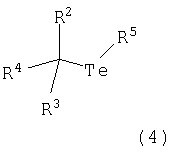 в которой R5 представляет собой С1-С8алкил, арил, замещенный арил или ароматическую гетероциклическую группу, каждый из R2 и R3 представляет собой атом водорода или С1-С8алкил и R4 представляет собой арил, замещенный арил, ароматическую гетероциклическую группу, гидроксикарбонил или циано. 5. Способ получения «живого» радикального полимера, отличающийся тем, что осуществляют полимеризацию винилового мономера с использованием соединения формулы (4) в качестве инициатора «живой» радикальной полимеризации. 6. «Живой» радикальный полимер, который может быть получен «живой» радикальной полимеризацией винилового мономера с использованием инициатора «живой» радикальной полимеризации формулы (4). 7. Инициатор «живой» макрорадикальной полимеризации, содержащий «живой» радикальный полимер по п.6. 8. Способ получения блок-сополимера, включающий полимеризацию винилового мономера с использованием в качестве инициатора «живой» радикальной полимеризации инициатора «живой» макрорадикальной полимеризации по п.7. 9. Блок-сополимер, который может быть получен полимеризацией винилового мономера с использованием в качестве инициатора «живой» радикальной полимеризации инициатора «живой» макрорадикальной полимеризации по п.7. 10. Теллурорганическое соединение, представленное формулой (5), по п.1