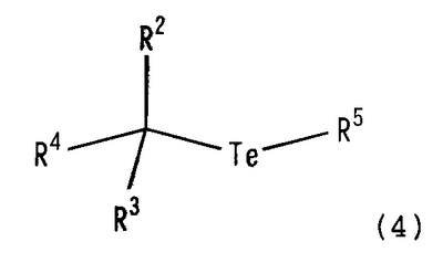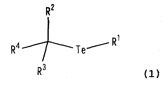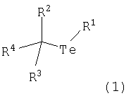 в которой R1 является таким, как он определен выше, М представляет собой атом щелочного металла, щелочноземельного металла или меди, и m равно 1, когда М представляет собой атом щелочного металла, m равно 2, когда М представляет собой атом щелочноземельного металла, или m равно 1 или 2, когда М представляет собой атом меди, и металлического теллура. 3. Теллурорганическое соединение формулы (1), которое может быть получено взаимодействием соединения формулы (2), соединения формулы (3) и металлического теллура. 4. Инициатор «живой» радикальной полимеризации формулы (4)