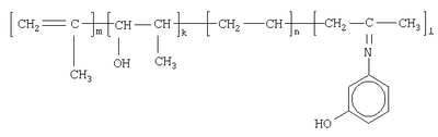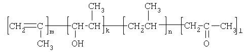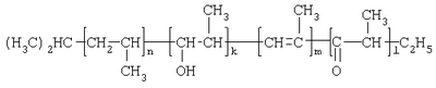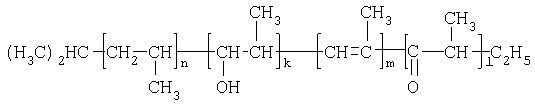 По результатам анализов синтезированный ОАПП имеет такую же общую формулу, как в примере 1, но следующее содержание звеньев в цепи: n=898,0; k=1,0; m=1,1; l=1,6 с М =38000.
