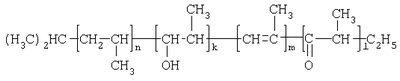 Кислородсодержащие группы в ОАПП определяют по ИК-спектрам: карбонильные – при =1720 см-1 с коэффициентом экстинкции =220 кг/(моль·см), связанные водородной связью ОН группы – при =3200-3600 см-1 с =70 кг/(моль·см). Количество гидроксильных групп у вторичного атома углерода определяют ацилированием уксусным ангидридом в пиридине по известной методике (Торонцева А.М., Белогородская К.В., Бондаренко В.М. Лабораторный практикум по химии и технологии высокомолекулярных соединений. Л.: Химия, 1972, 416 с.). Ненасыщенность полимеров определяют методом азонолиза на приборе АДС-4.