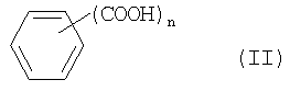 где в данной формуле (I) R1, R2, R3 и R4, соответственно и независимо друг от друга, являются радикалами, выбираемыми из числа алкильных групп, содержащих от 1 до 20 атомов углерода, и фенильной группы, m представляет собой целое число в диапазоне от 1 до 4, и если m представляет собой целое число, равное 2, 3 либо 4, то тогда 2, 3 либо 4 группы R2 и R3 могут быть, соответственно, идентичными друг другу либо отличающимися друг от друга, и (b) продуктов реакции между соединениями титана, описываемыми общей формулой (I), и ароматическими многоосновными карбоновыми кислотами, описываемыми формулой (II):
