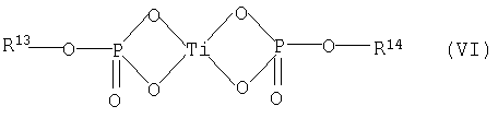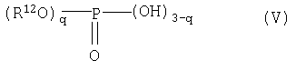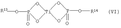 где в данной формуле (IV) R8, R9, R10 и R11, соответственно и независимо друг от друга, представляют собой алкильную группу, содержащую от 1 до 20 атомов углерода, p представляет собой целое число в диапазоне от 1 до 3, и если p представляет собой целое число, равное 2 либо 3, то тогда 2 либо 3 группы R9 и R10 могут быть, соответственно, идентичными друг другу либо отличающимися друг от друга, и (d) продуктов реакции между алкоксидами титана, описываемыми общей формулой (IV), и ароматическими многоосновными карбоновыми кислотами, описываемыми приведенной выше общей формулой (II), либо ангидридами кислот; и компонент (D) содержит, по меньшей мере, одно соединение фосфора, описываемое общей формулой (V):