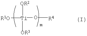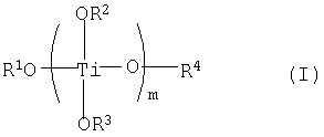 где в данной формуле (I) R1, R2, R3 и R4, соответственно и независимо друг от друга, являются радикалами, выбираемыми из числа алкильных групп, содержащих от 1 до 20 атомов углерода, и фенильной группы, m представляет собой целое число в диапазоне от 1 до 4, и если m представляет собой целое число, равное 2, 3 либо 4, то тогда 2, 3 либо 4 группы R2 и R3 могут быть, соответственно, идентичными друг другу либо отличающимися друг от друга, и (b) продуктов реакции между соединениями титана, описываемыми общей формулой (I), и ароматическими многоосновными карбоновыми кислотами, описываемыми формулой (II)